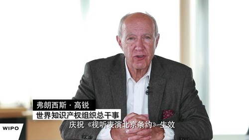 世界知识产权组织总干事高锐为《视听表演北京条约》生效庆祝宣传活动发来视频致辞