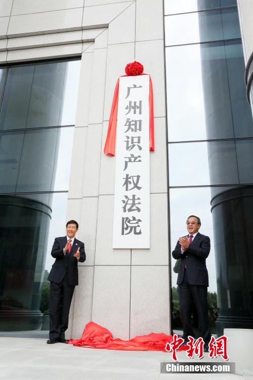 12月16日,广州知识产权法院举行揭牌仪式,中共中央政治局委员、广东省委书记胡春华,最高人民法院常务副院长沈德咏共同为广州知识产权法院揭牌。