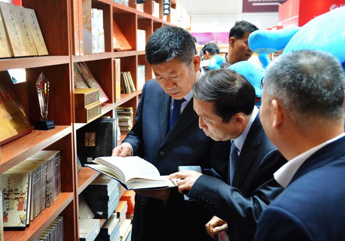 国家新闻出版广电总局(国家版权局)副局长阎晓宏参观青岛出版集团展区。