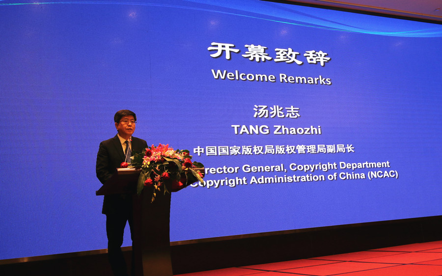 中央宣传部(国家版权局)版权管理局副局长汤兆志在研讨会上致辞。