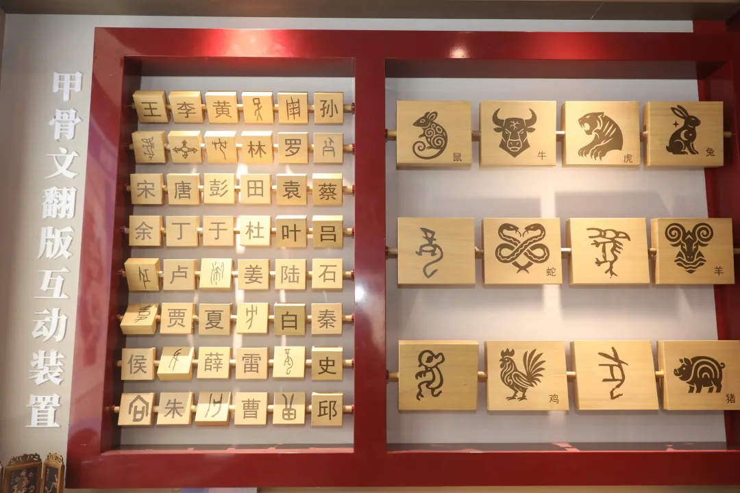 特别值得一提的是,展馆入口处的甲骨文姓氏墙成为有趣的互动打卡点。观众举着手机,扫码后就能在古老的文字中仔细寻觅自己的姓氏。一位年轻女孩指着其中一个类似“口”的字形,自信地念出声来:“我认识这个,这是口!怎么有这个姓?”却被工作人员笑着纠正:“这是‘丁’字,在甲骨文里,‘添人添口’就是‘添丁’的意思。”